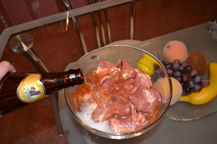 Возьмите на заметку следующий рецепт: два килограмма мяса, три луковицы, 500 миллилитров пива, 20 миллилитров растительного масла, соль, лавровый лист и черный перец горошком по вкусу.