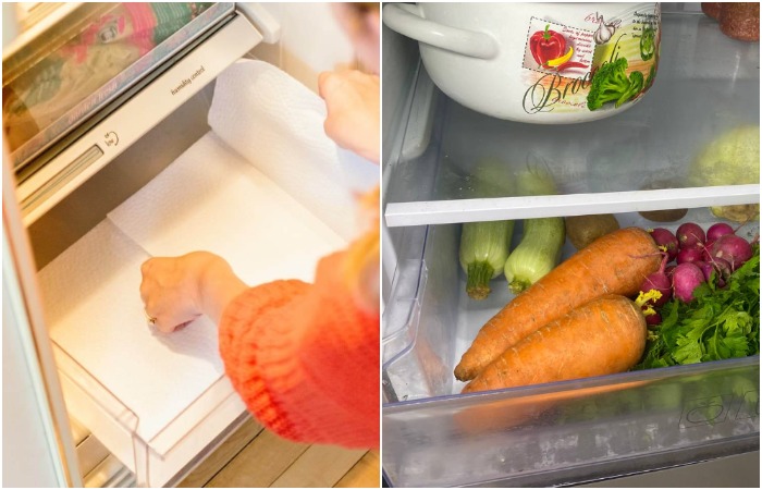 Долго хранили овощи в холодильнике, и они начали портиться? Обидно, но не критично. Некоторых «товарищей» можно спасти и успеть из них что-нибудь приготовить. Достаньте все продукты из ящика и застелите дно бумажным полотенцем (лучше сделать несколько слоев). После этого верните овощи на место. Полотенце будет впитывать лишнюю влагу, которая чаще всего и становится причиной быстрого гниения продуктов.