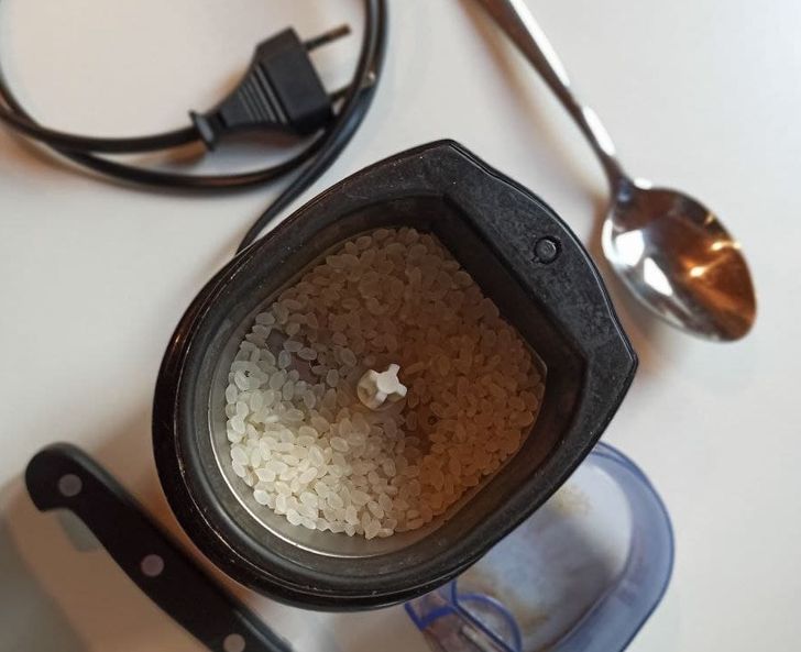 Чтобы избавиться от посторонних запахов в кофемолке, измельчите в ней немного риса в течение минуты