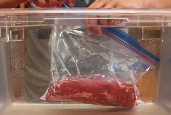 Понадобится пакет ziplock и емкость с водой. Вода вытеснит лишний воздух