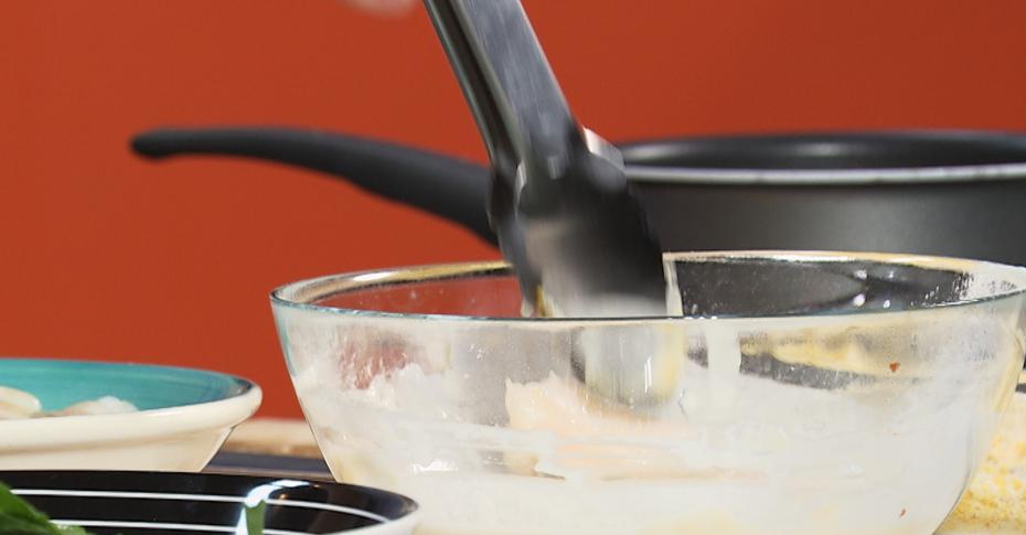 3. Смешайте ингредиенты венчиком до однородности. Дайте кляру настояться 40 минут.